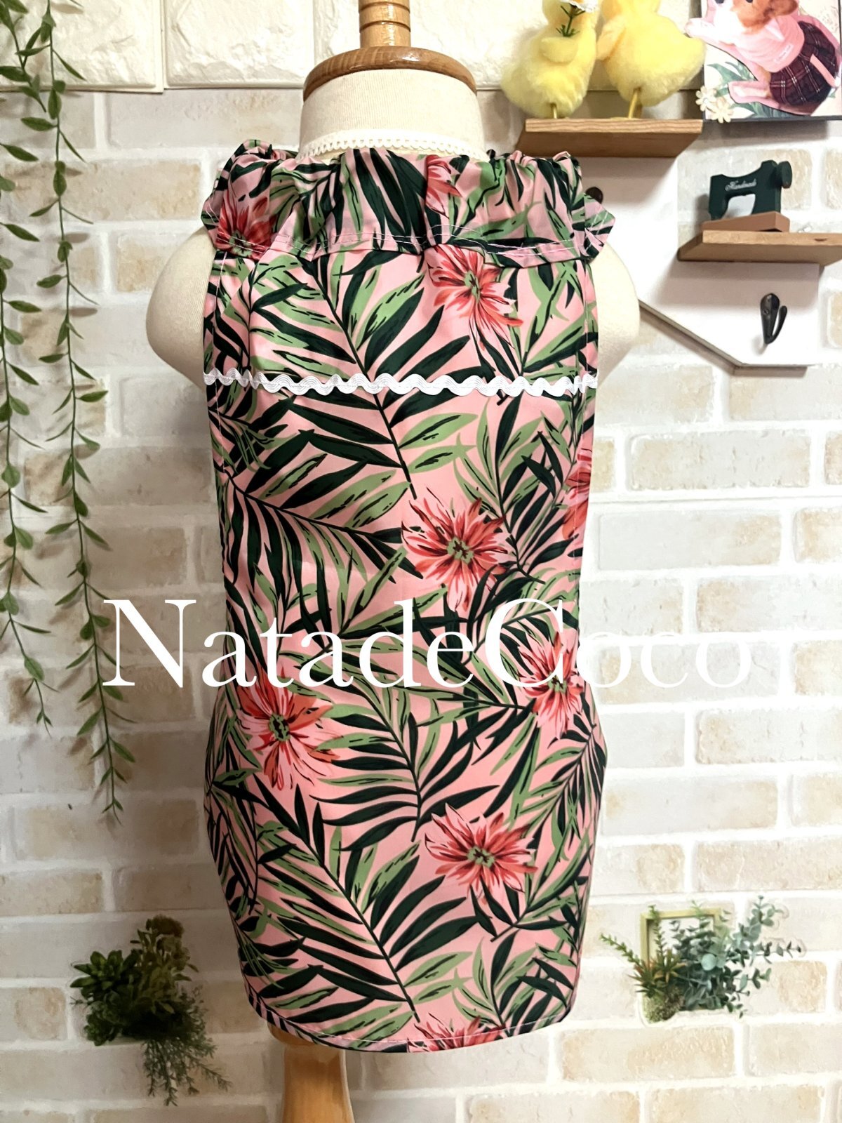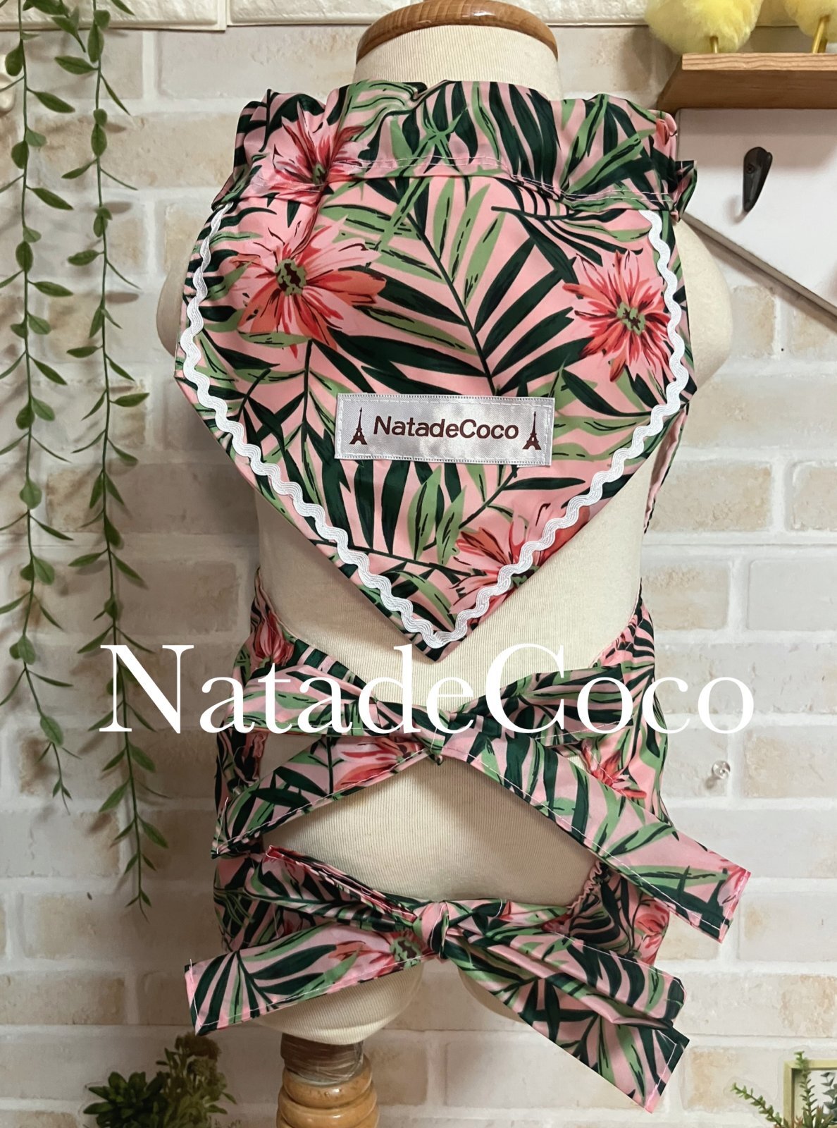 ピンク南国の花◆撥水バンダナひもエプロン [S Mサイズ No.04]